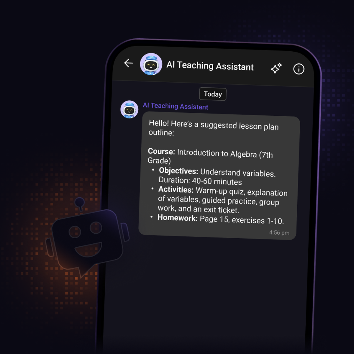 Interactive in app chat equipped with reactions, polls, scheduling and more to engage students in an online setting.